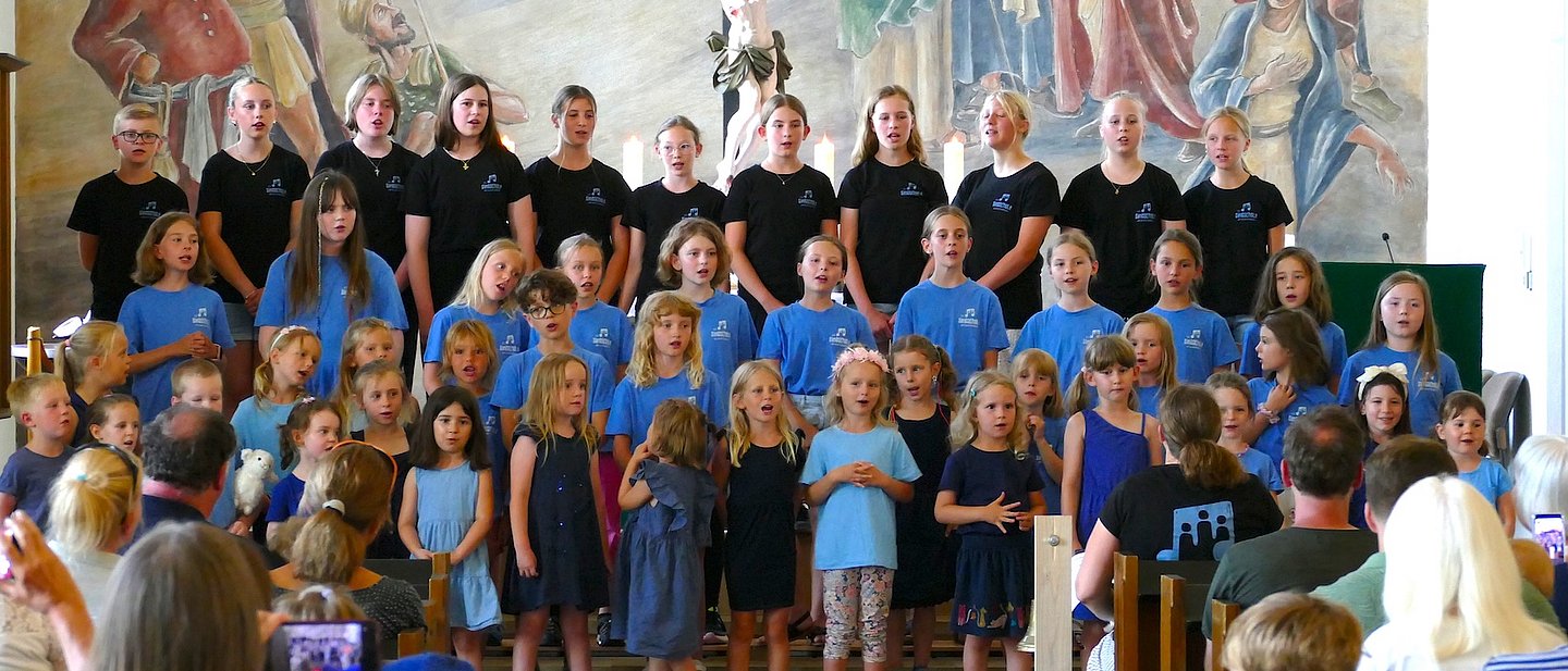 Das ist das Motto unserer Singschule, in der Kinder von 4-18 Jahren singen können. In drei nach Alter gestaffelten Gruppen haben die Kinder bei uns die Möglichkeit, durch altersgerechte stimmliche und musikalische Förderung ihre Stimme und ihren Körper als Instrument zu entdecken und zu entwickeln. Im Vordergrund steht dabei die Freude am gemeinsamen Singen und damit verbunden die Stärkung musischer und sozialer Fähigkeiten durch Lieder und Musik.